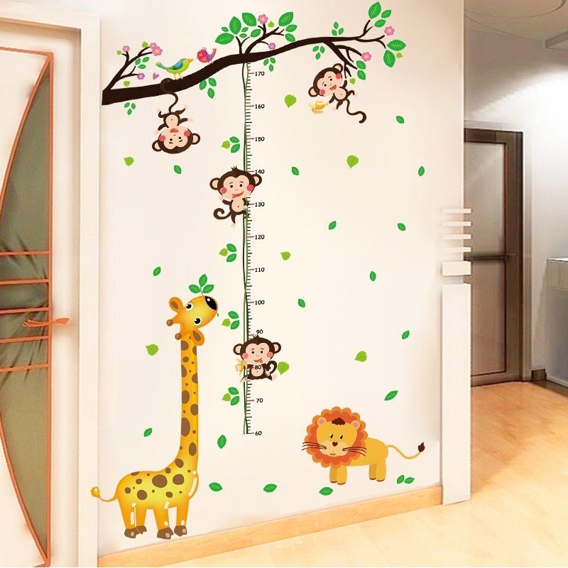 墙贴纸墙壁贴画动物卡通身高测量儿童米尺贴图宝宝成长见证树热门设计联盟服务商
